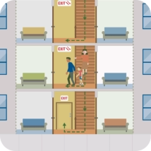 using the exit stairs.